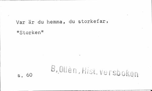 //// Var är du hemma, du storkefar, "Storken" //// .. 60 MUén.Hist. versboken ////