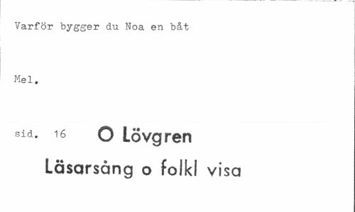 //// Varför bygger du Noa en båt Mel, //// sid. 16 O Lövgren //// Läsarsång o folk! visa ////