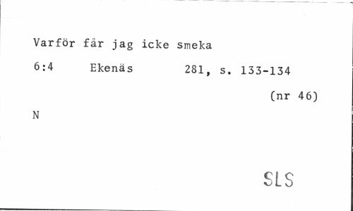 //// Varför får jag icke smeka //// 6:4 Ekenäs 281, s. 133-134 //// (nr 46) //// N //// SLS ////