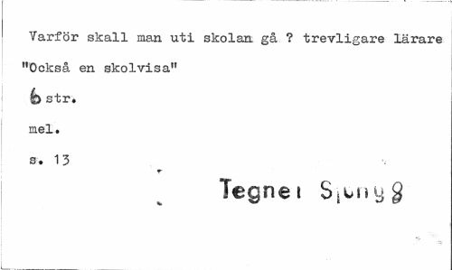 //// Varför skall man uti skolan gå ? trevligare lärare "Också en skolvisa" str. mel. s. 13 //// r //// Tegnei S^nyg ////