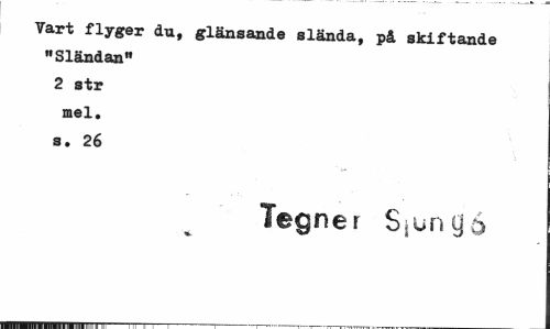 //// Vart flyger du, glänsande alända, på skiftande "Sländan" 2 str mel. s. 26 //// Tegnér Sjunyd ////