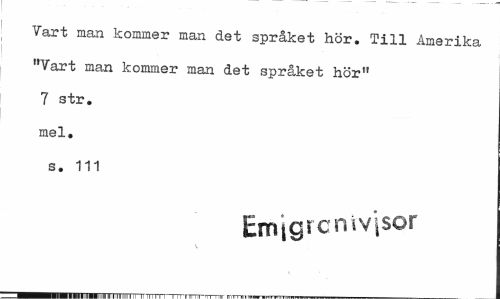 //// Vart man kommer man det språket hör. Till Amerika "Vart man kommer man det språket hör" 7 str. mel. s. 111 //// Emigrcnivisor ////