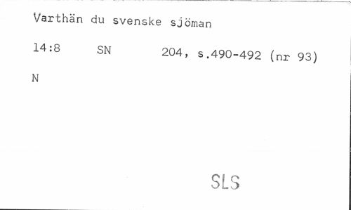 //// Varthän du svenske sjöman //// 14:8 SN 204, s.490-492 (nr 93) //// N //// SLS ////