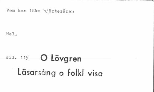 //// Vem kan läka hjärtesåren Mel. //// sid. 119 O Lövgren //// Läsarsång o folkl visa ////