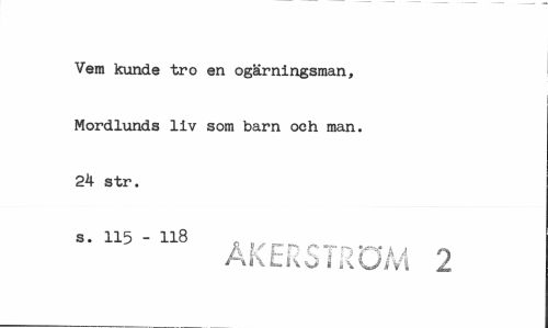//// Vem kunde tro en ogärningsman, Mordlunds liv som barn oeh man. 24 str. //// s. 115 - 118 c //// A V P n C " r% J-* k A r% rilXLKv ä å\KJfy\ / ////