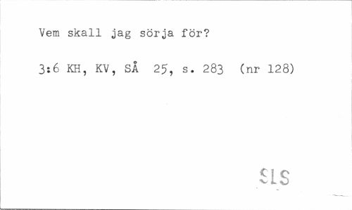 //// Vem skall jag sörja för? //// 3:6 KH, KV, SÅ 25, s. 283 (nr 128) //// SLS ////