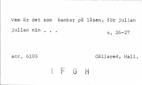 //// Vem är det som bankar på låsen, för julian julian min ... g 26-27 //// acc. 6103 Gällared, Hall. //// I F 6 H ////
