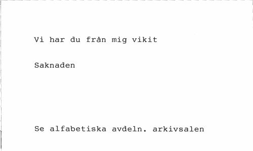 //// Vi har du från mig vikit Saknaden //// Se alfabetiska avdeln. arkivsalen ////