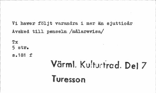 //// Ti hävder följt varandra i mer än. sjuttioår Avsked till. penseln /målarevisa/ //// Tx //// 5 str. s.181 f //// Värml. Kufhirfrad. Del 7 Turesson ////