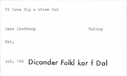 //// Vi lova dig o store Gud //// Lars Lindberg Malung //// Mel. //// sid. 168 Dicander foikl kor f Dal ////