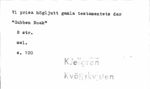 //// Ti prisa högljutt gamla testamentets dar "Gubben Noak" 8 str. mel. s. 100 //// Kieneren Kväll skv;s1 en ////