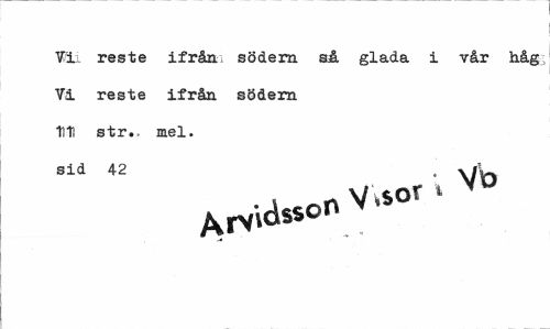 //// Vi reste ifrån; södern så glada i vår håg Vi reste ifrån södern Uti str.. mel. //// sid 42 , wU //// ArVv dsson ////