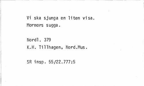 //// Vi ska sjunga en liten visa. Mormors sugga. //// Norell. 379 //// K.H. Ti 11 hagen, Nord.Mus. SR insp. 55/22.777:5 ////