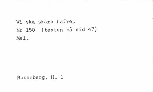 //// Vi ska skära hafre, Nr 150 (texten på sid 47) Mel. //// Rosenberg. H. 1 ////
