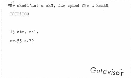//// Vi //// Tor skudd'äut u akä, far spänd för a krakä BÖIRAISU //// 15 str. mel. nr.53 s.72 //// ^vtavisor ////