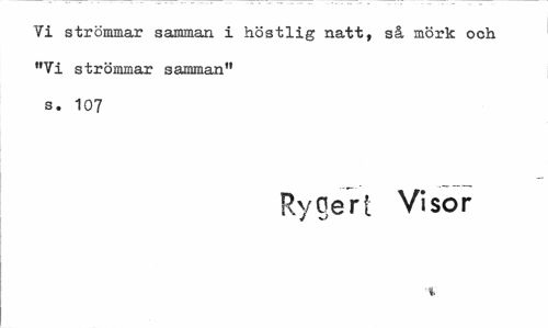 //// Vi strömmar samman i höstlig natt, så mörk och "Vi strömmar samman" //// s. 107 //// Ryöert Visor //// i. ////