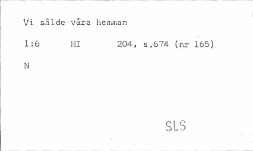 //// Vi sålde våra hemman //// 1:6 Hl 204, s.674 (nr 165) //// N //// SIS ////