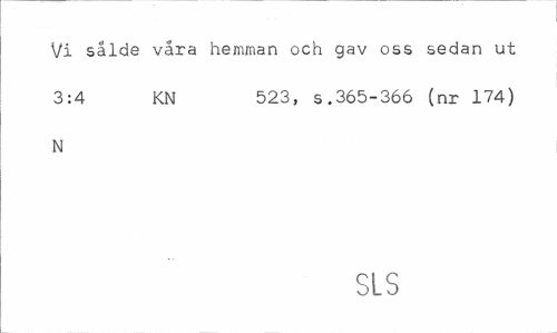 //// Vi sålde våra hemman och gav oss sedan ut 3:4 KN 523, s.365-366 (nr 174) //// N //// SLS ////