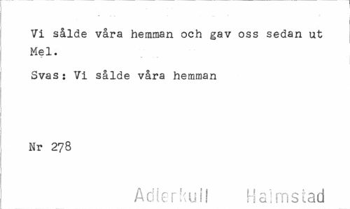 //// Vi sålde våra hemman och gav oss sedan ut Mel. //// Svas: VI sålde våra hemman Nr 278 //// Adlerkull Halmstad ////