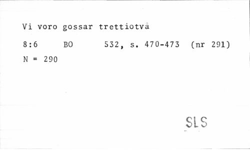 //// Vi voro gossar trettiotvå //// 8:6 BO 532, s. 470-473 (nr 291) //// N = 290 //// SIS ////