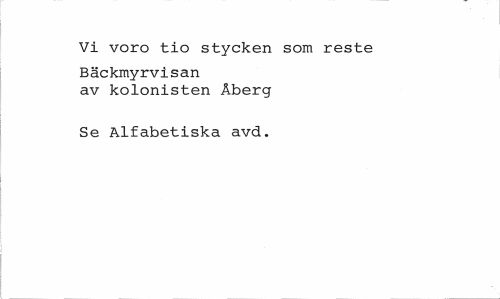 //// Vi voro tio stycken som reste //// Bäckmyrvisan av kolonisten Åberg //// Se Alfabetiska avd. ////