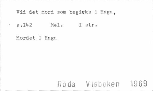 //// Vid det mord som begicks i Haga, s.1^2 Mel. I str. //// Mordet I Haga //// Roda Visboken 1969 ////