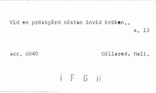 //// Vid en prästgård nästan invid kröken., //// s. 13 //// acc. 6040 Gallared, Hall. //// i F G H ////
