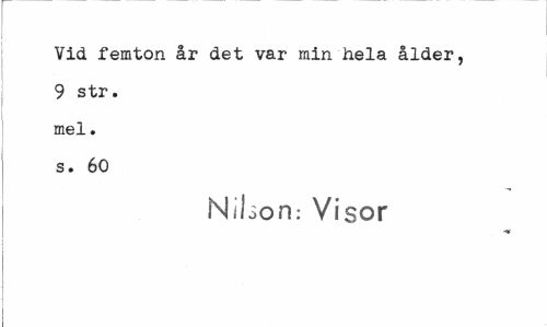 //// Vid. femton år det var min hela ålder, 9 str. mel. s. 60 //// N/bon; Visor ////