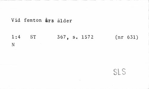 //// Vid femton års ålder //// 1:4 ST 367, s. 1572 (nr 631) //// N //// SLS ////