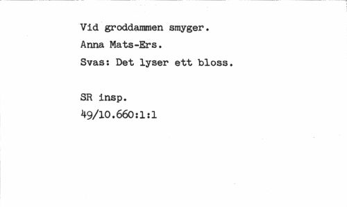 //// Vid groddammen smyger. //// Anna Mats-Ers. //// Svas: Det lyser ett bloss. //// SR insp. 49/10.660:1:1 ////