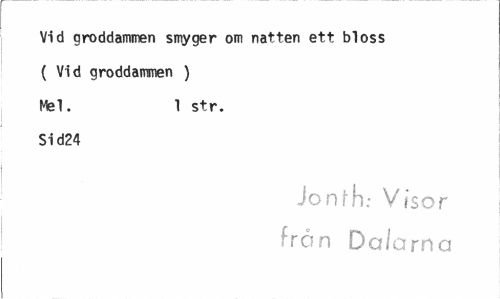 //// Vid groddammen smyger om natten ett bloss ( Vid groddammen ) Ntel. 1 str. //// Si d24 //// Jonfh; Visor ¦rön Dalarna ////