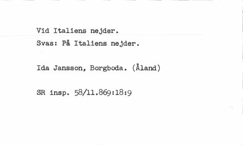 //// Vid Italiens nejder. Svas: På Italiens nejder. //// Ida Jansson, Borgboda. (Åland) //// SR insp. 58/11.869:18:9 ////