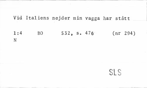 //// Vid Italiens nejder min vagga har stått //// 1:4 BO 532, s. 476 (nr 294) //// N //// SLS ////