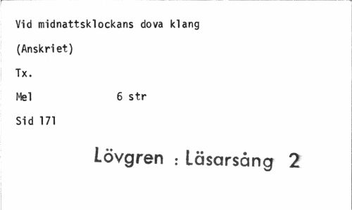 //// Vid midnattsklockans dova klang //// (Anskri et) //// Tx. //// Mel 6 str //// Sid 171 //// Lövgren : Läsarsång 2 ////