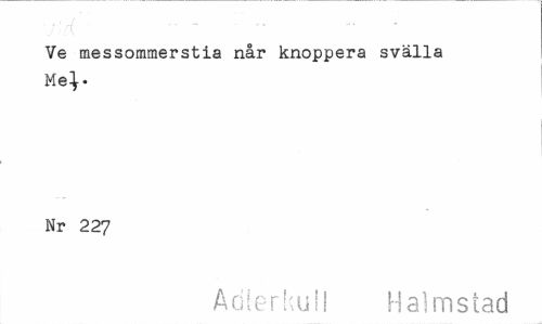 //// Ve messommerstia når knoppera svälla Me}. //// Nr 227 //// Adlerkull Halmstad ////