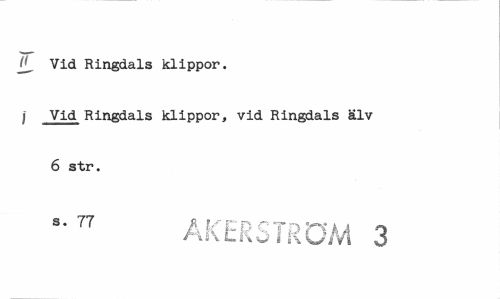 //// Vid Ringdals klippor. j Vid Ringdals klippor, vid Ringdals älv 6 str. //// s. 77 f. r n <"• t& i Ä //// AKtRolROM 3 ////