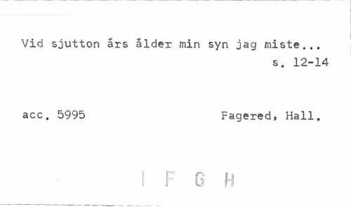 //// Vid sjutton års ålder min syn jag miste... //// s. 12-14 //// acc. 5995 Fagered, Hall. //// f F G H ////