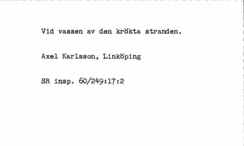 //// Vid vassen av den krökta stranden. Axel Karlsson, Linköping SR insp. 60/249:17:2 ////