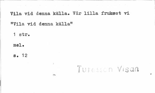 //// Vila vid denna källa. Vår lilla frukost vi "Vila vid denna källa" 1 str. mel» s. 12 //// Tuw V<saa ////