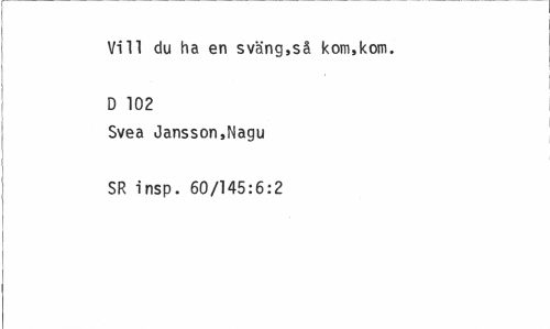 //// Vill du ha en sväng,så kom,kom. D 102 //// Svea Jansson,Nagu SR insp. 60/145:6:2 ////