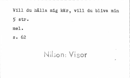 //// Vill du hålla mig kär, vill du bliva min 5 str. mel. s. 62 //// Nilson-. Visor ////