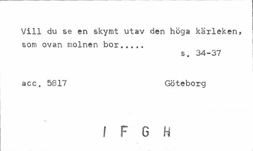 //// Vill du se en skymt utav den höga kärleken, som ovan molnen bor... //// s. 34-37 //// acc, 5817 Göteborg //// ! F G H ////