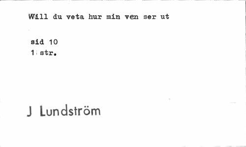 //// Will du veta hur min ven ser ut //// sid 10 1 str. //// J Lundström ////