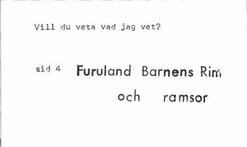 //// Vill du veta vad jag vet? //// sid 4 Furuland Barnens Rirr» //// och ramsor ////