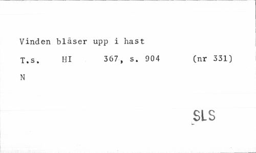 //// Vinden blåser upp i hast //// T.s. Hl 367 , s. 904 (nr 331) //// N //// SLS ////