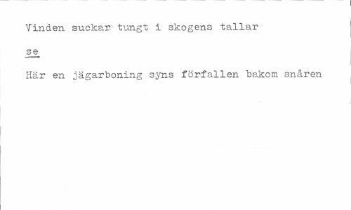 //// Vinden suckar- tungt i skogens tallar se //// Här en jägarboning syns förfallen bakom snåren ////