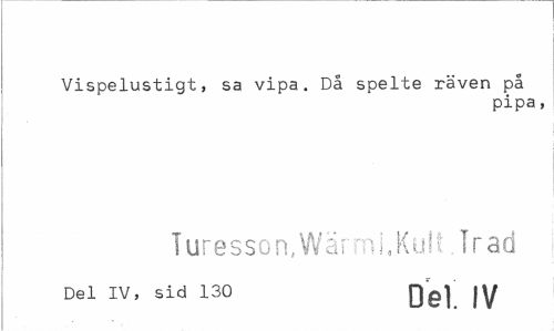 //// Vispelustigt, sa vipa. Då spelte räven på //// pipa, //// Turesson.Wärml.Kult Trad //// Del IV, sid 130 |y ////