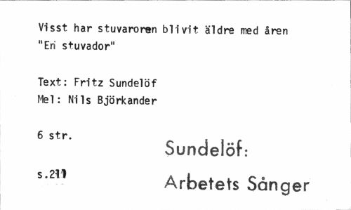//// Visst har stuvaroren blivit äldre med åren "Eri stuvador" //// Text: Fritz Suridelöf Mel: Nils Björkander //// Suridelöf: s'211 Arbetets Sånger ////
