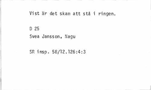 //// Vist är det skam att stå i ringen. D 25 //// Svea Jansson, Nagu SR insp. 58/12.126:4:3 ////
