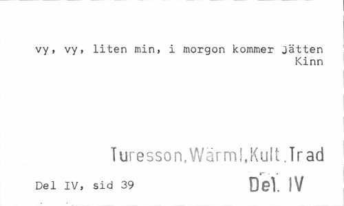 //// vy, vy, liten min, i morgon kommer jätten //// Kinn //// Turesson,Wärml,Kult .Trad //// - //// Del IV, sid 39 D©1. IV ////